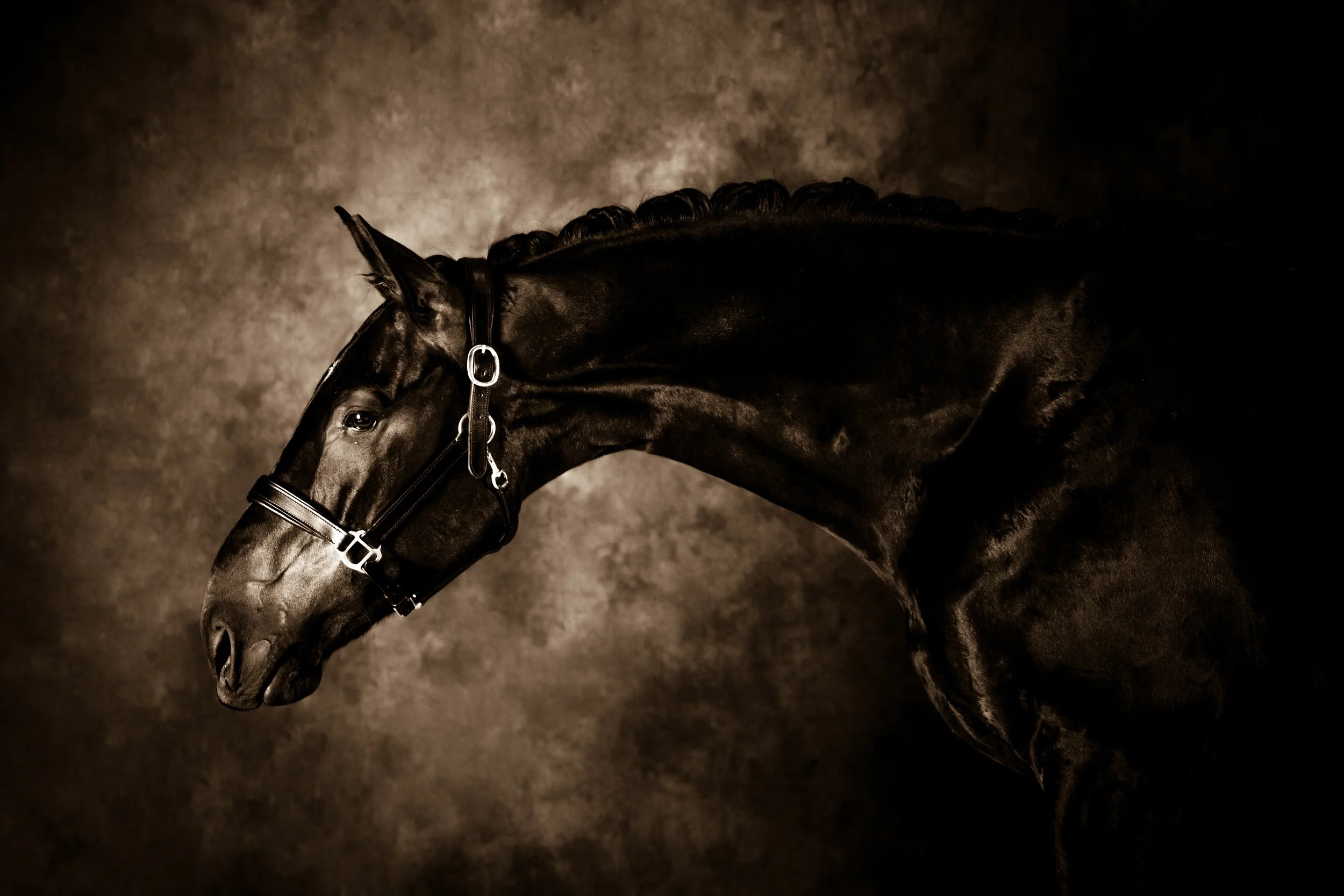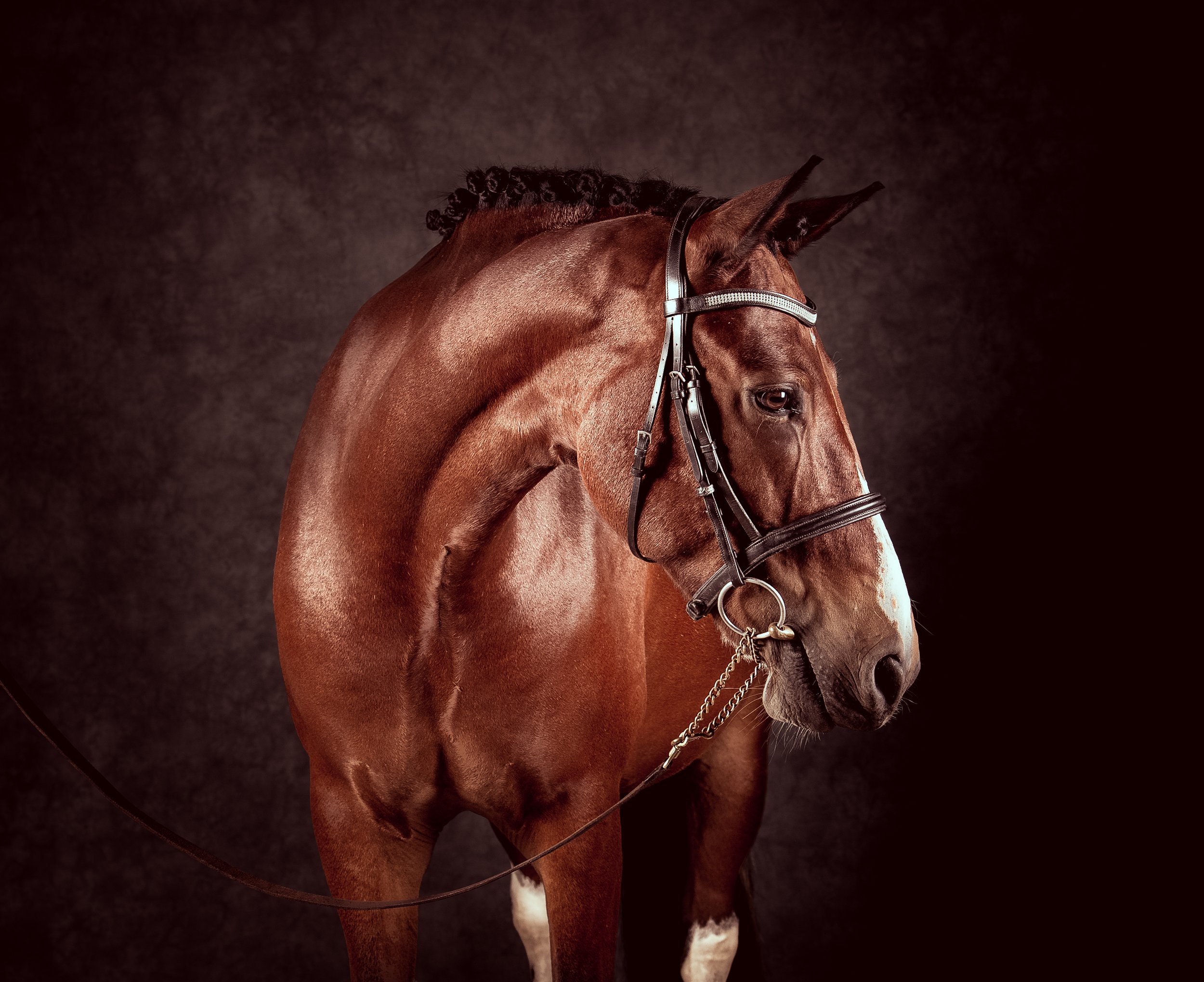 Indoor horse portraits are fantastic for capturing the horse on its own, highlighting personality and fine details. We use a professional studio set up inside an indoor arena or a spacious barn to control light and background. Indoor shoots typically take around 30 minutes per horse, giving the horse time to settle while we work efficiently. Thoughtful lighting and careful editing are applied to produce these superb, timeless images.